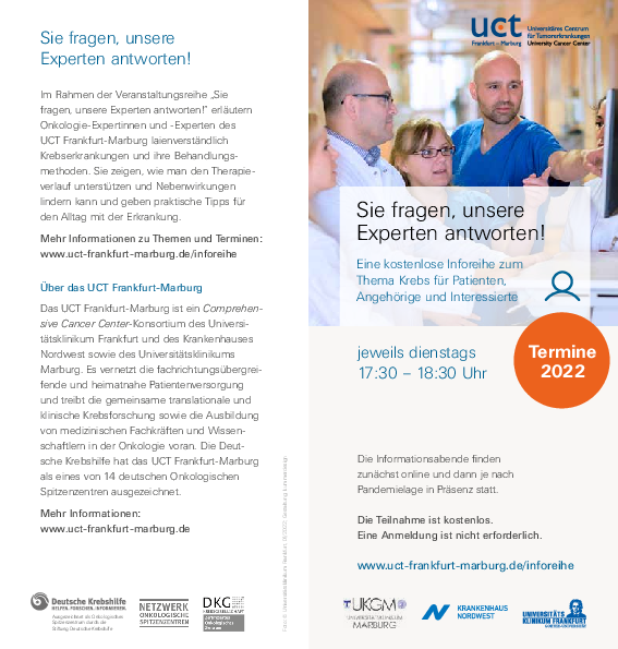 Online-Informationsreihe 2022: Sie fragen, unsere Experten antworten! Herzlich willkommen zu unserer Online-Informationsreihe zum Thema Krebs für Patienten, Angehörige und Interessierte!